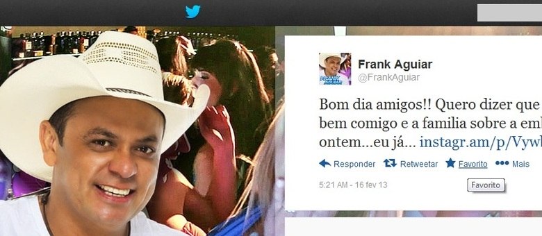 Em uma rede social, o cantor e vice-prefeito, conhecido como o "Cãozinho dos Teclados", informou aos fãs que estava bem e que não ocupava o veículo na hora dos disparos. Ele chegou a postar ainda uma foto tirada na manhã deste sábado para provar que nada havia sofrido.