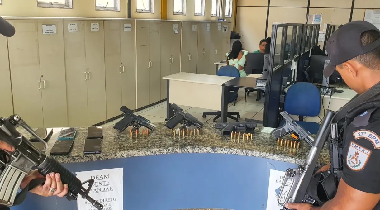 De acordo com a PM, policiais do 27°BPM (Santa Cruz) foram acionados para uma ocorrência de evento ilegal na Rua Cedro Amarelo, em Guaratiba, na zona Oeste da capital. Durante o cerco, vários suspeitos tentaram fugir, mas um carro foi interceptado com os três milicianos.